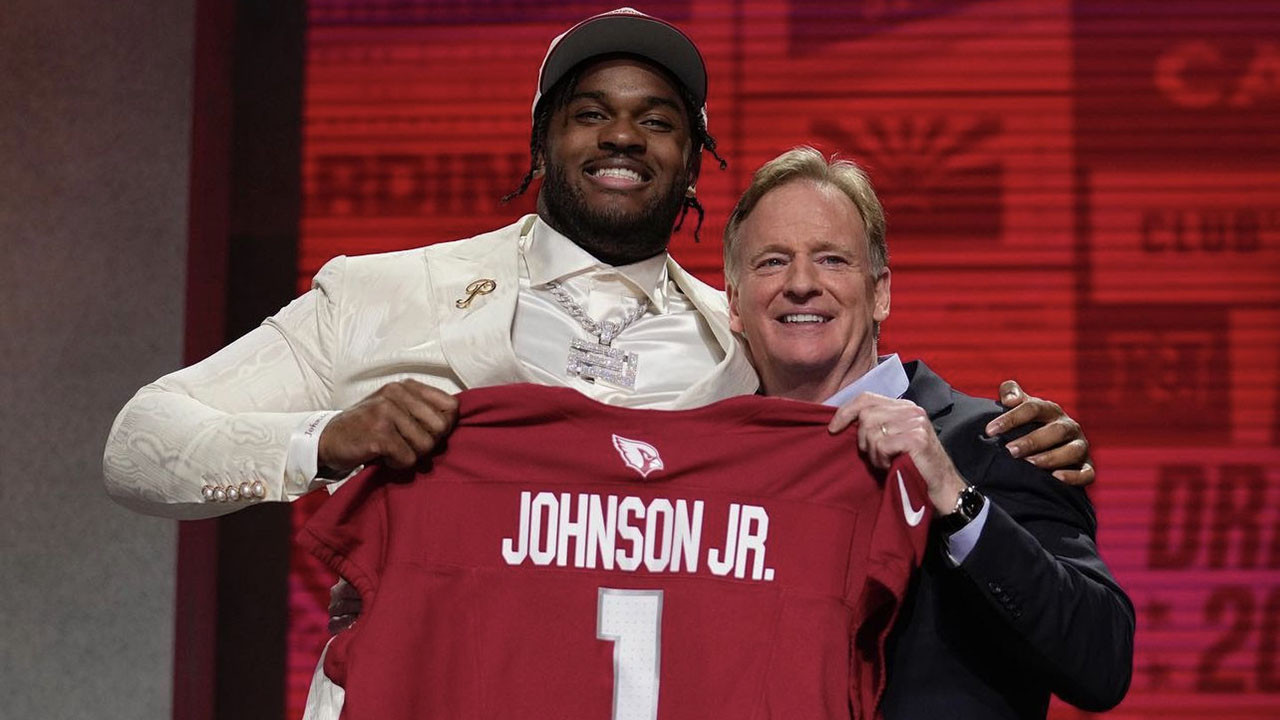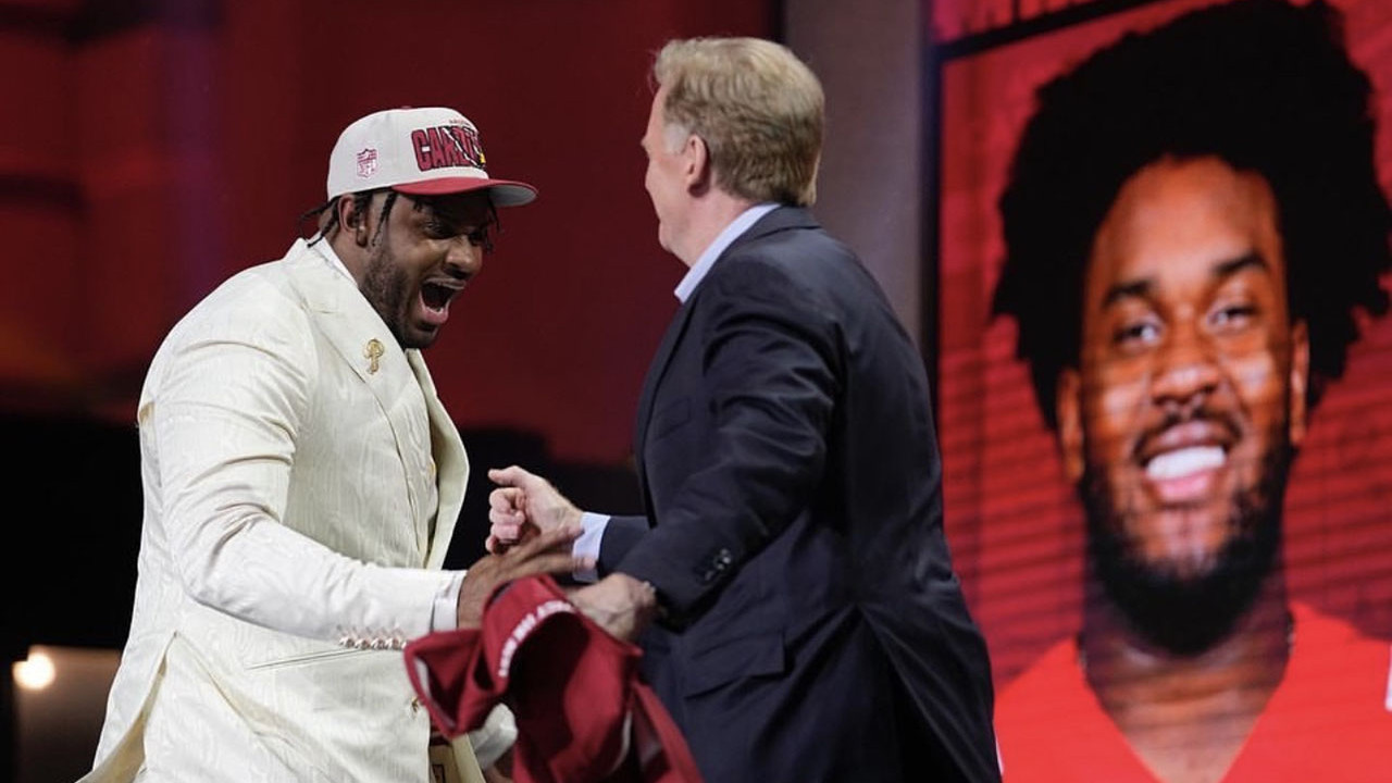 The Cardinals select Ohio State Buckeyes offensive tackle Paris Johnson Jr. in Round 1 of the 2023 NFL Draft with the No. 6 overall pick.